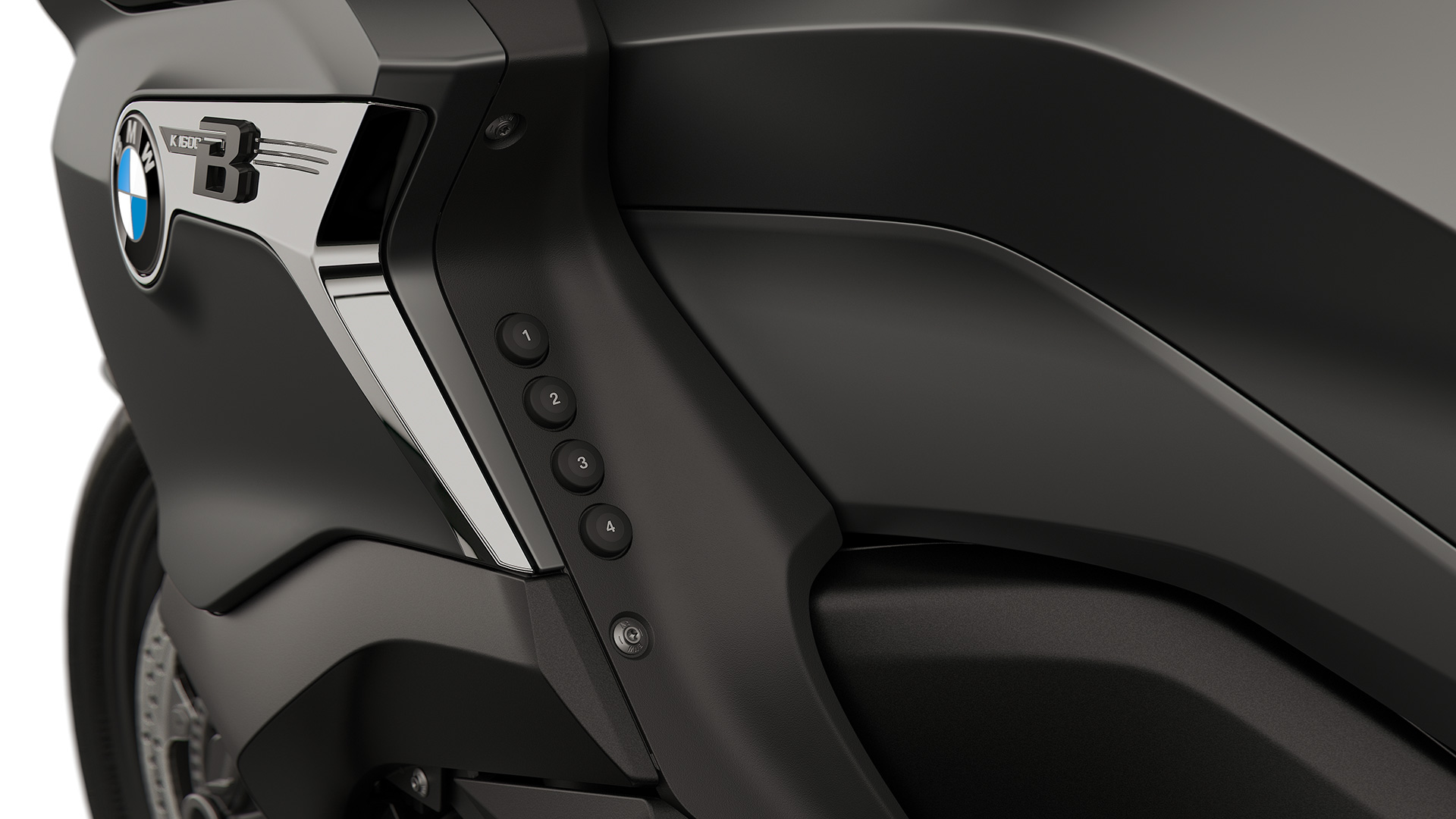 Culoarea negru Storm metalizat scoate în evidență designul consecvent al modelului K 1600 Grand America: linii clare și muchii precise pentru un aspect general care este inspiră respect și dinamism.