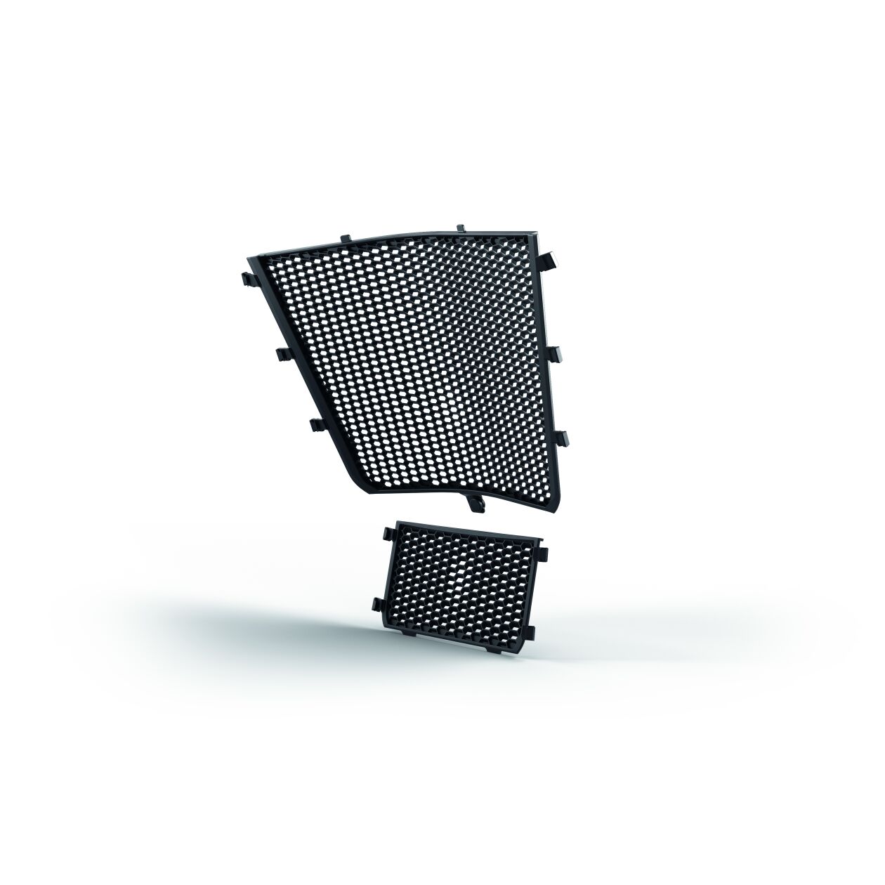 Grilajul de protecție pentru radiator BMW Motorrad protejează fiabil radiatorul împotriva abraziunilor anvelopei și daunelor din cauza fragmentelor de piatră. Grilajul de poliamidă din două piese se potrivește în mod ideal la nivelul răcitorului de apă superior și răcitorului de ulei inferior și designul său se potrivește perfect cu aerodinamica motocicletei.